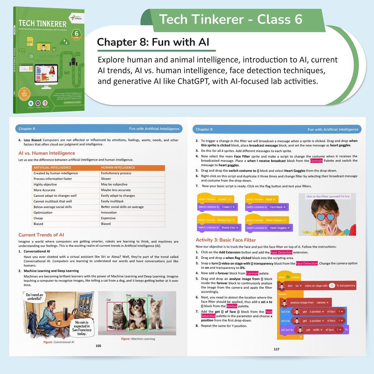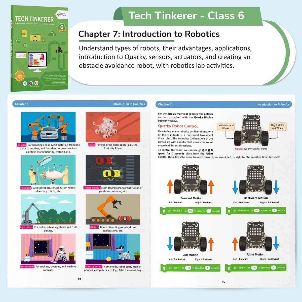 Tech Tinkerer for Class 6 is an immersive and thoughtfully designed computer science book that equips students with foundational and advanced skills in Coding, Artificial Intelligence, Robotics, and ICT. Blending theoretical understanding with hands-on lab activities, this book promotes creativity, innovation, and problem-solvingll while aligning with the objectives of the National Education Policy (NEP) 2020. It's the perfect tool to prepare learners for a rapidly evolving digital future.