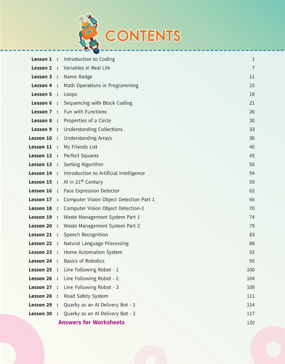 Fuel your child's creativity and critical thinking with this comprehensive, hands-on textbook designed to introduce Coding, Artificial Intelligence, and Robotics through real-world, application-based projects. Perfectly aligned with the CBSE Coding and AI Skill Subjects and the National Education Policy (NEP) 2020, this book is a powerful tool for building 21st-century tech skills.
