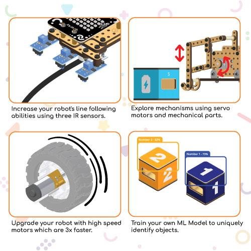 This kit also contains high-speed motors, Quarky Expansion Board, and other components that provide a significant learning advantage to students.