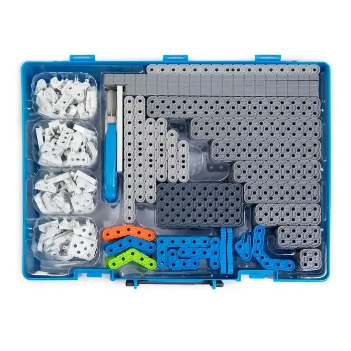 - Comes with a robust set of structural building pieces — beams, plates, and connectors — offering versatility in robot design.